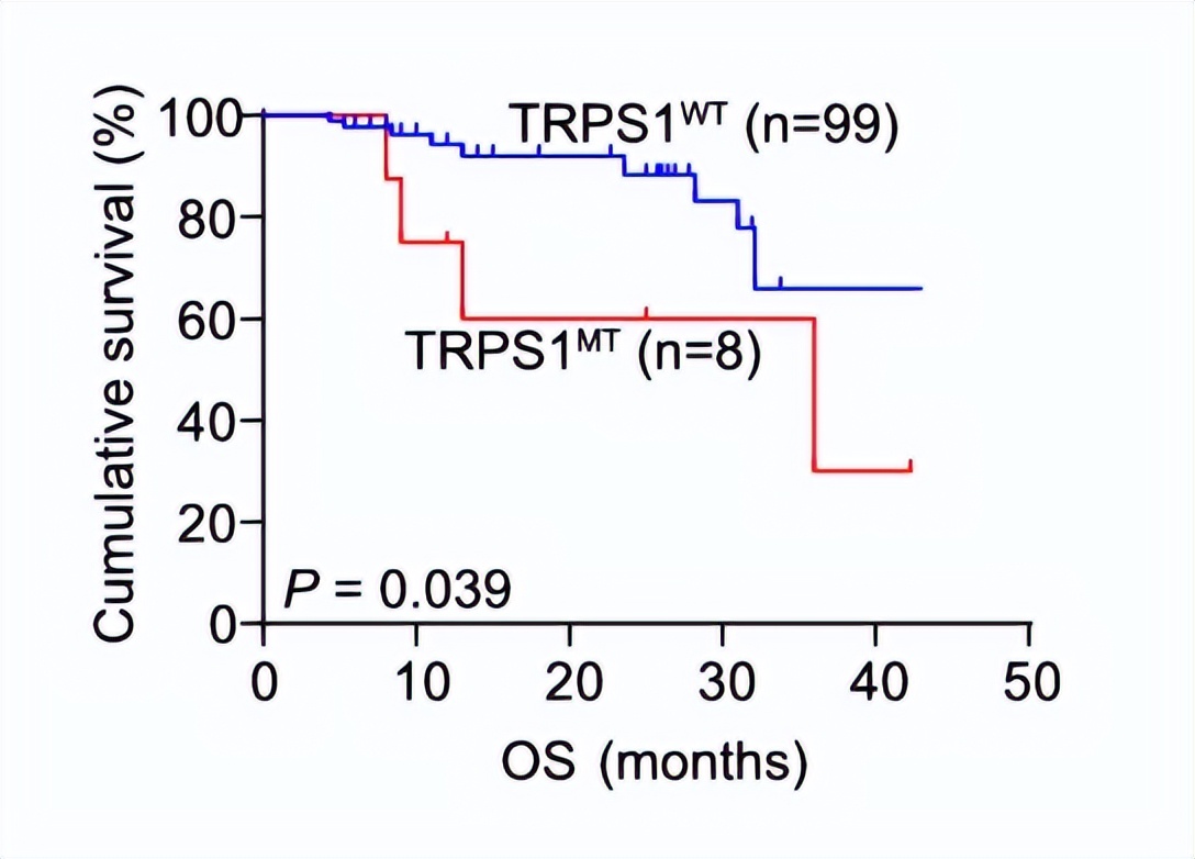 图2 TRPS1突变人群DFS、OS更差