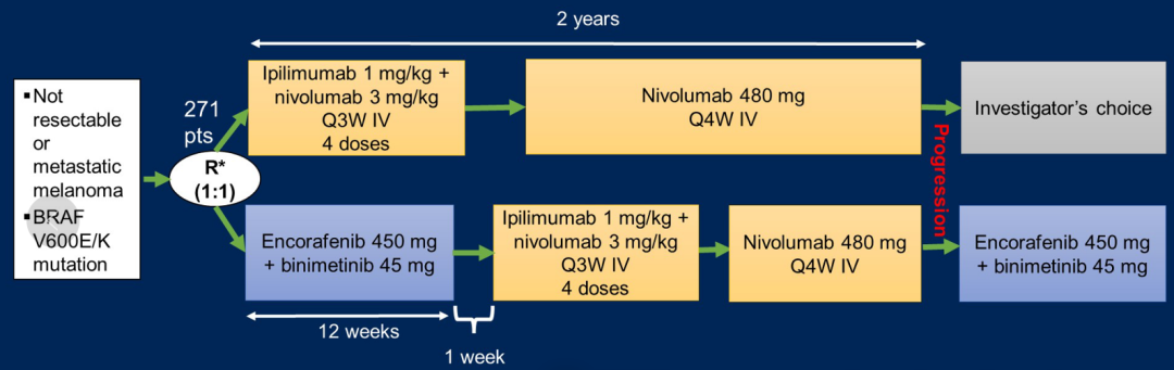 [6]ASCO 2024,LBA9503-Combination of encorafenib and binimetinib followed by ipilimumab and nivolumab versus ipilimumab and nivolumab in patients with advanced BRAF-V600E/K-mutated melanoma:The primary analysis of an EORTC randomized phase II study(EBIN)