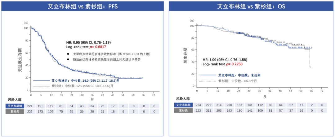 EMERALD研究中艾立布林组及紫杉醇组的PFS和OS
