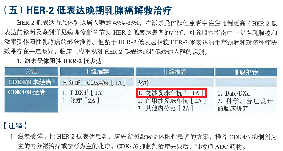 图4.《CSCO BC指南》对CDK4/6i经治HR+/HER2低表达患者治疗推荐