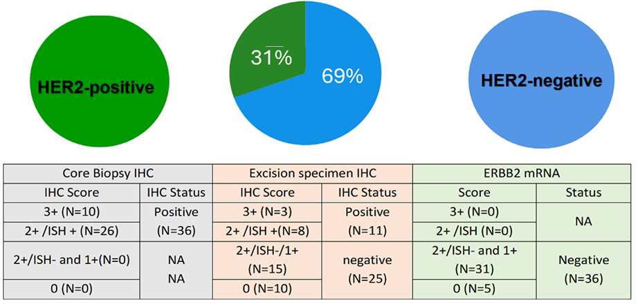 这项研究旨在评估基于mRNA的多基因检测在预测HER2+乳腺癌患者的抗HER2治疗的疗效作用,并对比了MammaTyper分类和传统IHC分类的差异。研究结果表明,MammaTyper检测可以客观且准确地评估HER2状态,对治疗结果具有重要意义。未来的研究需要进一步改进这些技术,并在更大、更多样化的队列中验证其临床实用性。