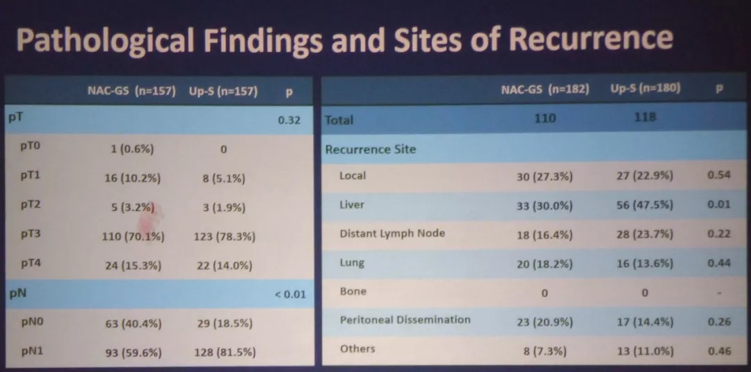 结论:新辅助化疗可提高PDAC患者的中位生存期。但该研究尚存在不足:1、化疗方案只对比了吉西他滨和S1;2、两组化疗方案的不同会影响结果的判读;3、有多少患者在复发后接受了化疗;R1切除对预后的影响;两组DFS有无区别;两组化疗方案的具体剂量是多少。