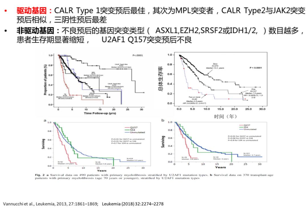 驱动基因和非驱动基因对PMF患者预后影响