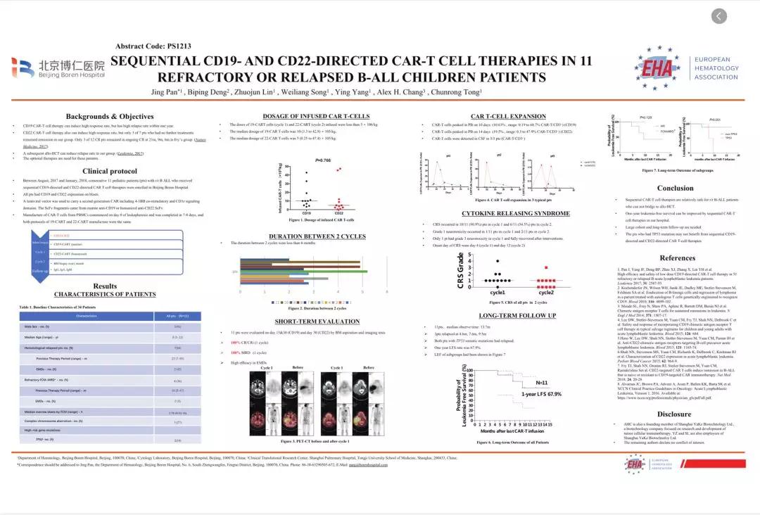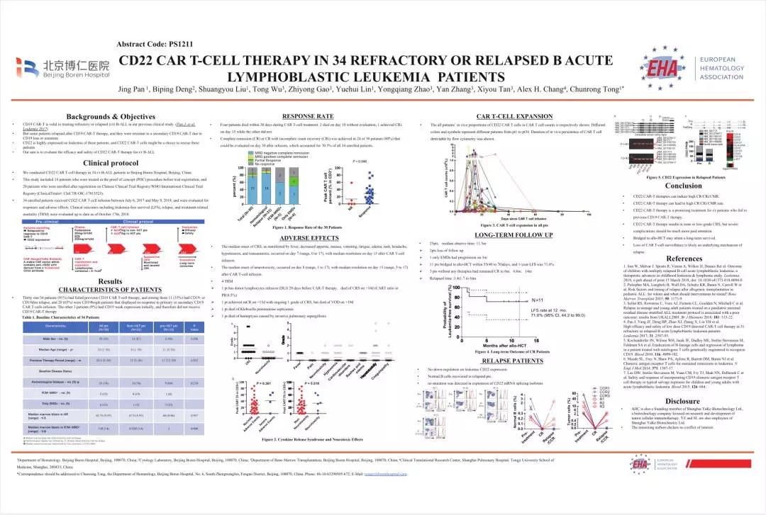 “CD22- CAR- T细胞治疗34例难治/复发急性B淋巴细胞白血病”研究的poster