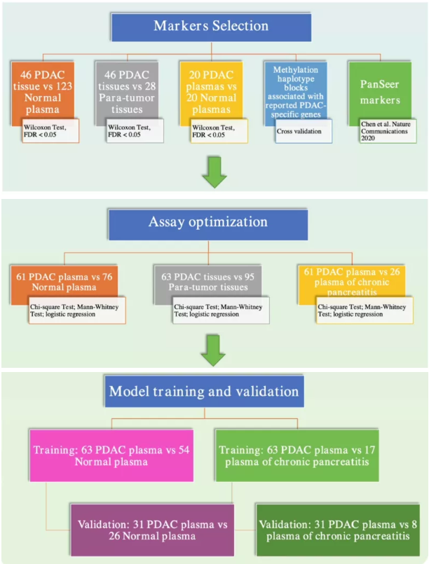 本研究通过对PDAC组织和血浆的筛选和验证,开发了一种基于二代测序的PDAC特异性DNA甲基化靶点检测方法。研究结果令人满意,可将PDAC从非恶性疾病中验证出来,作为基于血液的早期PDAC无创筛查,其具有很大的临床应用潜力。