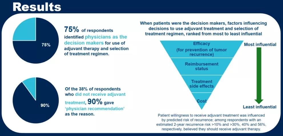 结论:大多数患者会接受辅助治疗,其中最常见的是全身治疗和TACE。手术切除的患者有强烈意愿通过辅助治疗减少术后复发。治疗决策中最重要的因素为医生意见,其次是经济因素。当患者是决策者时,最大的影响因素是治疗效果,其次是报销情况。