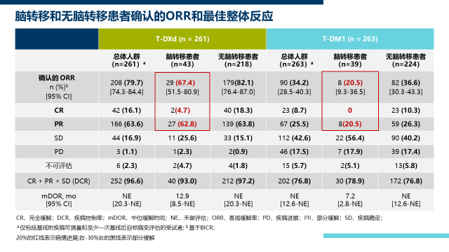 在T-DXd首个随机对照、Ⅲ期的DESTINY-Breast03研究中,纳入临床稳定、经过治疗的脑转移患者。