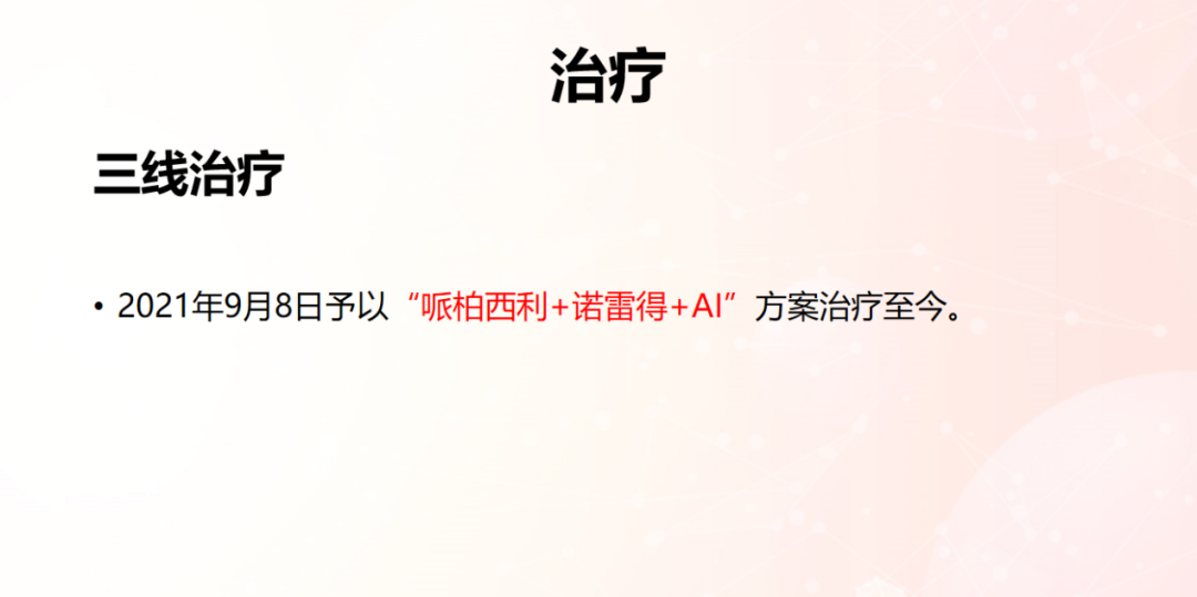 裴静教授:该病例为ER阳性的晚期乳腺癌患者,在治疗原则上,除非患者有内脏危象,否则我们还是要考虑内分泌治疗。对于内分泌治疗敏感的人群,我会选用CDK4/6抑制剂联合AI,该患者处于绝经前,所以会使用OFS+CDK4/6抑制剂联合AI的方案。对于激素受体阳性的晚期患者,采用内分泌联合方案会使患者的生存获益更多。