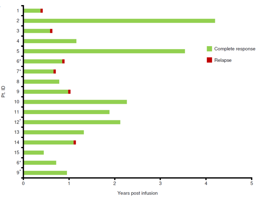 图2辅助治疗组患者输注mLSTs后的缓解情况