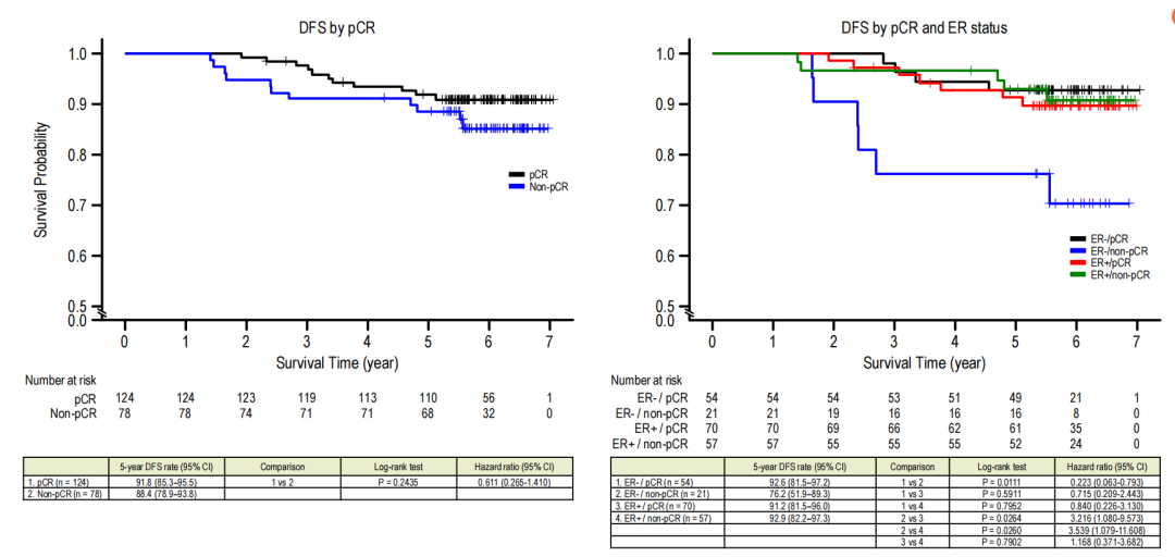 △图3.ER状态下达到pCR/未达pCR患者的DFS