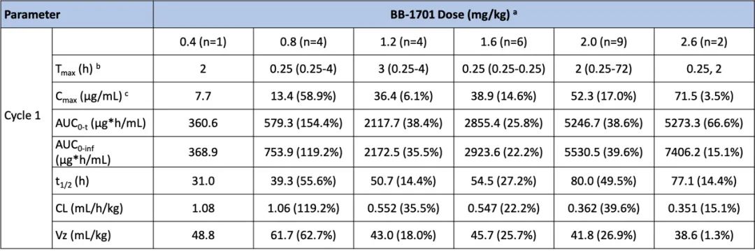 a:采用非室室分析法计算药代动力学参数;b:中位数(范围);c:平均值(CV%)。