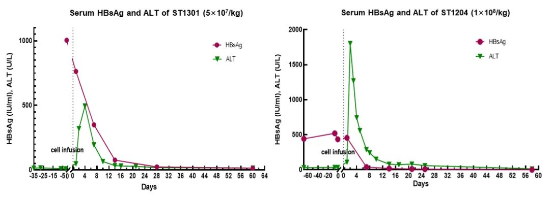 图4.SCG101治疗后HBsAg和ALT水平的变化