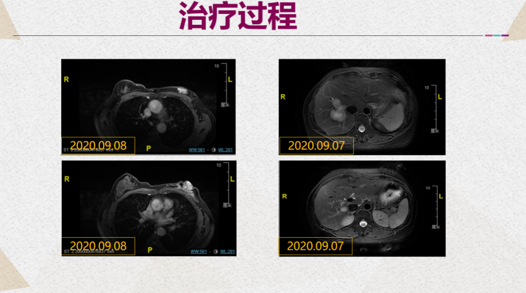 杨谨教授:该病例中患者为初诊Ⅳ期的乳腺癌且出现孤立性肝转移,在CDK4/6抑制剂出现进展后接受化疗,后检测为HER2低表达。我们假设将有效的治疗药物(DS-8201)前移,患者从治疗开始就有良好的缩瘤效果,然后采用多学科的综合治疗,从而实现更好的病情控制。如果让您进行选择,您会如何进行决策?