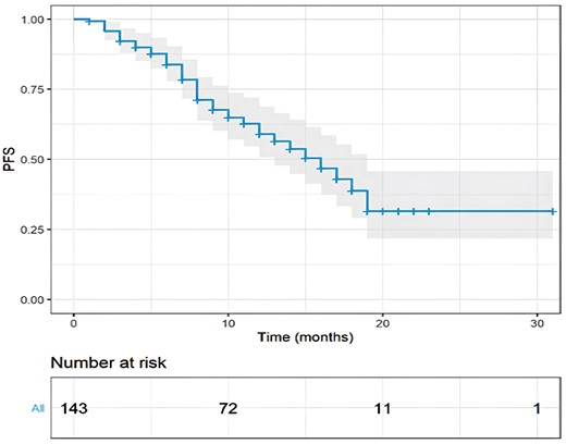 中位随访时间为12个月(范围:2~31个月),中位rwPFS为16个月(95%CI:13~19)。