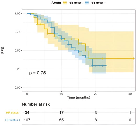 值得注意的是,在HR+或HR-疾病患者中,T-DXd与相似的rwPFS相关(HR 0.92,95%CI:0.51~1.67,P=0.78)。