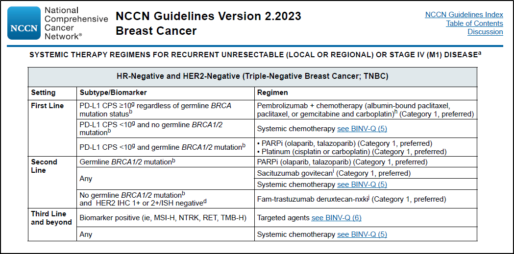 基于DB-04研究和ASCENT研究,NCCN指南针对TNBC二线治疗的ADC推荐中,SG和T-DXd均为优选方案,SG不受生物标志物限制(1类证据),T-DXd则用于HER2低表达患者(1类证据)[7]