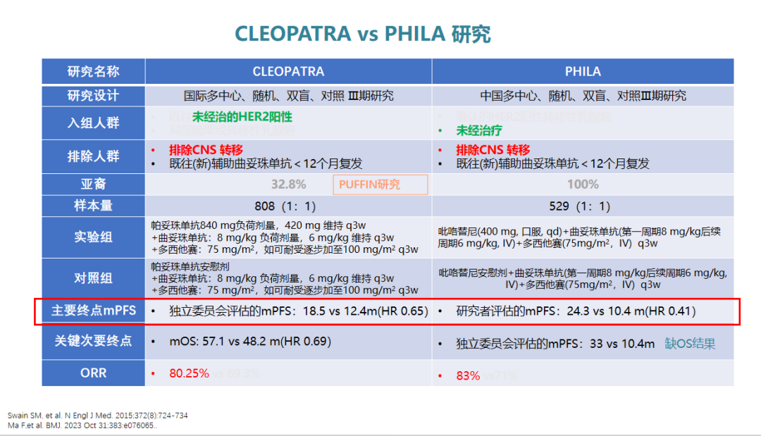 △CLEOPATRA研究vs PHILA研究(非头对头比较,请谨慎进行解读)