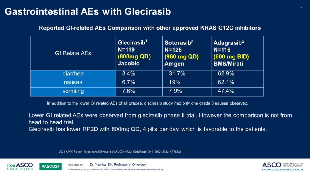 参考文献:Yuankai Shi,et al.Updates on Abstract 468214:A pivotal phase 2 single-arm study of glecirasib(JAB-21822)in patients with NSCLC harboring KRAS G12C mutation.2024 ASCO.
